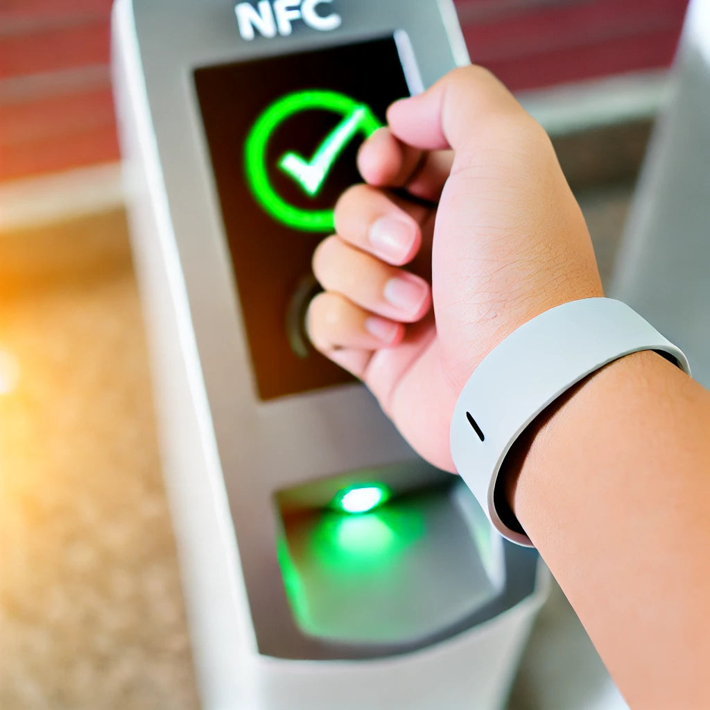 - Tilgangskontroll og sikkerhet: NFC-kort eller -armbånd fungerer som elektroniske nøkler i adgangssystemer. De kan brukes til å gi autorisert tilgang til kontorbygg, hotellrom og fasiliteter som treningssentre, der et raskt skann av kortet eller armbåndet låser opp døren.